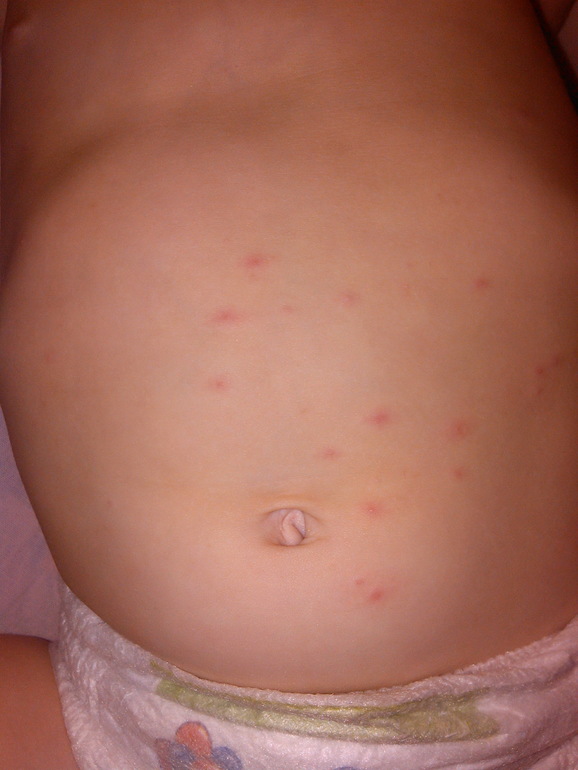 Высыпания на кожеЗавтра с утра пойдем к дежурному врачу, а пока сидим с мужем спорим ветрянка у младшей или нет. В четверг сдавали анализы перед прививкой, нас завернули по причине верхней границы нормы лейкоцитов. Симптомов болезней никаких не было, ребёнок скакал по пол-ке как обычно, разве что на люстре не висела. Почему лейкоциты повышены так и не поняли. Температуры нет, зуда нет, горло чистое, насморк тоже не присутствует да и не было. Сейчас также кроме сыпи на пузе ничего нет.