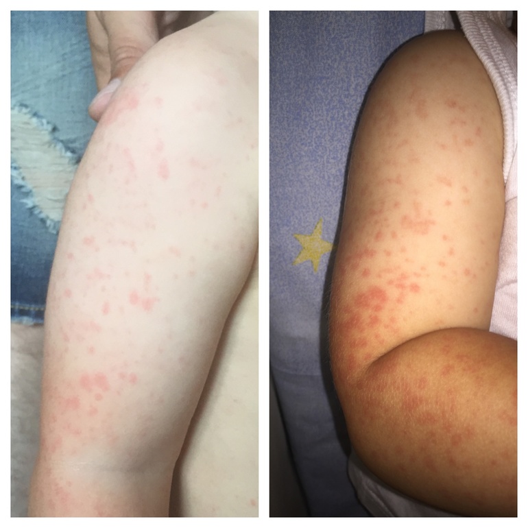 АллергияДва дня назад только прошла сыпь от розеолы, а сегодня с утра мой ребёнок проснулся с леопардовым раскрасом. Лицо, уши, руки, ноги, немного спина - все в сыпи. Вызвали скорую, сказали крапивница. Сделали укол гормональный. Вроде сыпь стала бледнее. Сказали сесть на диету. А сейчас ночью опять сыпь усилилась. Боюсь сама засыпать, опасаюсь отека. Из продуктов вчера ничего нового не ели, единственное грешу на готовые наггетсы в кукурузной обсыпке (папа дал два раза откусить). Позавчера впервые попробовали арбуз - но прошло больше суток, поэтому вряд ли от него. Ещё врач со скорой сказала, что теперь придётся сдавать анализы на аллергены. Зачем? Ведь у нас в первый раз такое, я понимаю когда сдают те, кого сыпет на все подряд. У кого была крапивница - Вы сдавали потом анализ на аллергены? Ну и фото утро/ночь
