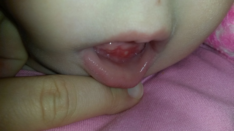 Лечим горло, язык, губы...Мамочки, пишу сюда. Т.к. вы опытные. У дочки зубы режуться. И появилась вот это. Что это и как лечить? К педиатру записались.