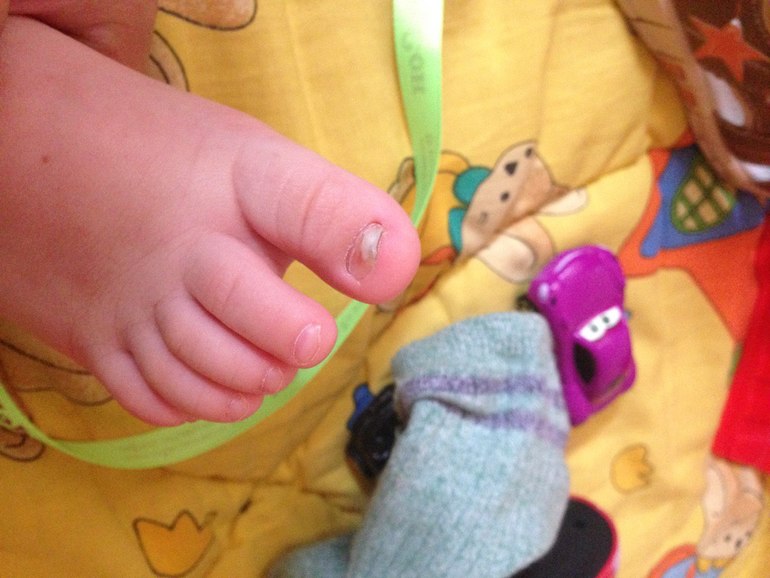 у маленьких часто онихомикозы бывают.и быстро проходят ,т.к. рост детского ноготка быстрее ,чем распространяются споры.скорее всего пропишут витамины.и тщательная гигиена,октенисепт например.все лекарства от микозов очень токсичны.остается обратить внимание на взрослых,дедушек,бабушек, гостей.