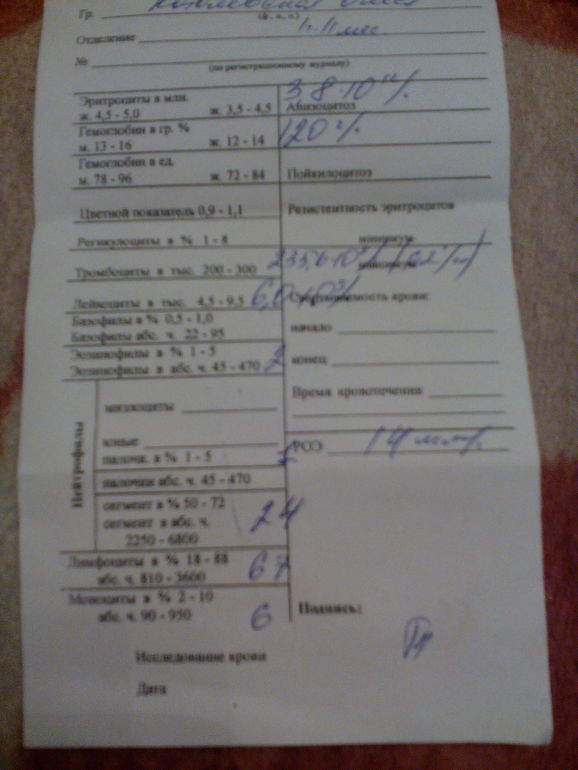 Заболели! Все об ОРВИ :(Блин опять мы заболели.... Месяц назад у дочки была гнойная ангина, чуть не попали в инфекцию. Потом я простыла, следом бабушка. Последний муж. Только муж поправился ... и у дочки вчера 37,2 , ночью 38,3. Сейчас опять 37,2. Кашля, соплей нет. Мне кажется красное горло, но не даёт посмотреть как следует. Утром сдали общий крови. Может кто разбирается , помогите расшифровать. Ко врачу только вечером. Опять какая то жо..начинается у нас :-)