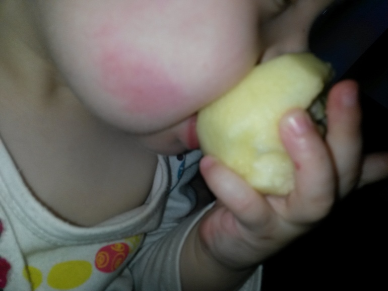 Высыпания на кожеДобрый вечер. Еще утром заметила у дочи на щеке красное пятно. Не знаю от чего оно. Вечером дала зиртек, оно пока на месте. Не шершавое, края не ровные, ни шишек ни уплотнений нет. В прошлый четверг ставили прививку КПК. Может ли на нее быть такая реакция? Вчера не гуляли, только в субботу, было морозно, но может ли от холода через день покраснение появиться?Еще капризничает весь день.