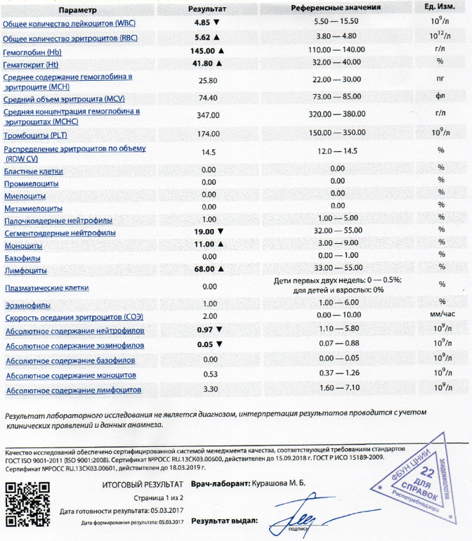 По крови вирус.Повышение эритроцитов и гематокрита наталкивает на мысль о темпе и недостатке питья.Грубо говоря кровь густая.А так...ничего такого.