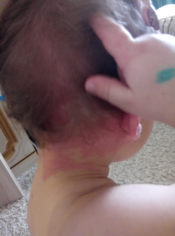 Локализация такая беспорядочная- все-таки похоже больше на мощную крапивницу. Тем более,,чтт пятна вооьще все разных размеров и формы На ладонях- офигеть!! Вот только настораживает отсутствие зуда, кроме головы.