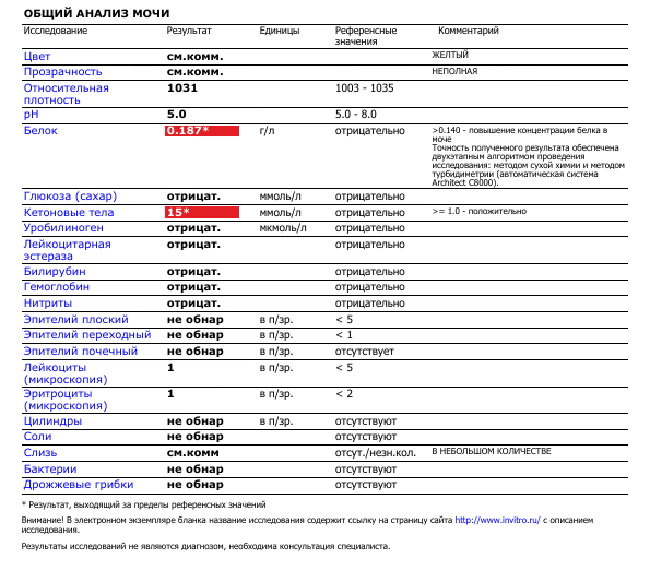 Про анализ крови ничего не скажу, а вот анализ мочи условно нормальный: белок всегда в инвитро находят, а кетоновые тела из-за температуры, больше пить.