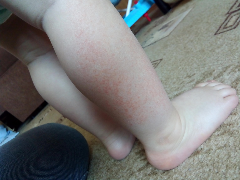 Высыпания на кожеНачалось недавно,но сегодня усилилось. Раньше чуть-чуть было покраснение и сухая кожа в этих местах. Врач говорит аллергия,но едим все то же и порошок тот же.Что это может быть?После прививки усилилось и ещё зубы у него лезут, может в этом причина?Чем помазать ножки?