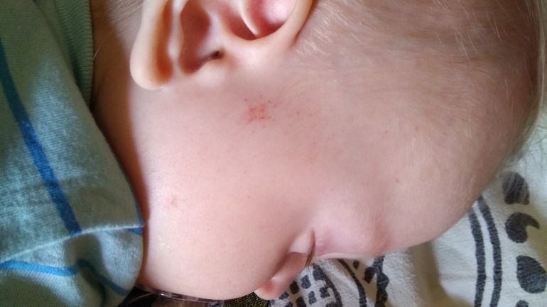 Может расчесал? Помажьте Акридермом(мазь). Нам всегда помогает от сыпи, расздражений и тому подобное.