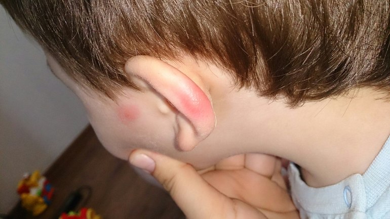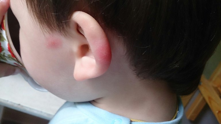 У моего ребенка (5 лет) аллергия на комаров. в детском саду покусал в область уха комар, На утро ухо раздулось очень сильно и болеть начало. Давала фенистил в каплях перорально и по совету педиатра из поликлиники мазала место опухоли и покраснения глазными каплями дексаметазона 0,1% раза 3 в день, отек на следующий день сошел на нет.