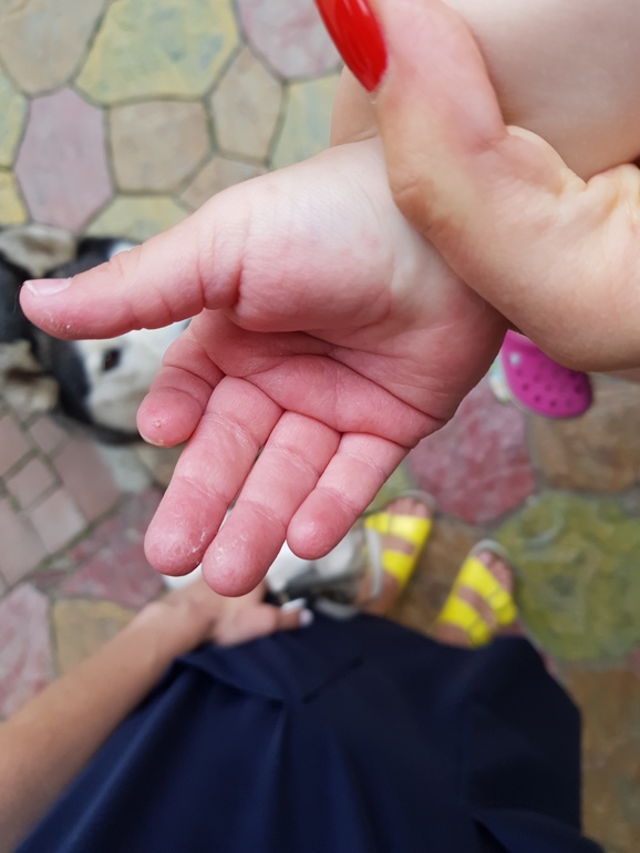 Дочке 2.3 , неделю назад на ладошках появилась краснота как будто ожег, на правой сильнее. Чесались.