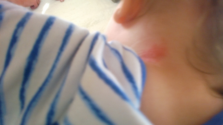Появилось такое высыпание 2 дня назад, сегодня сильнее. Что это? Атопический дерматит? Ну не было у нас такого!!! На шее высыпало, только с левой стороны