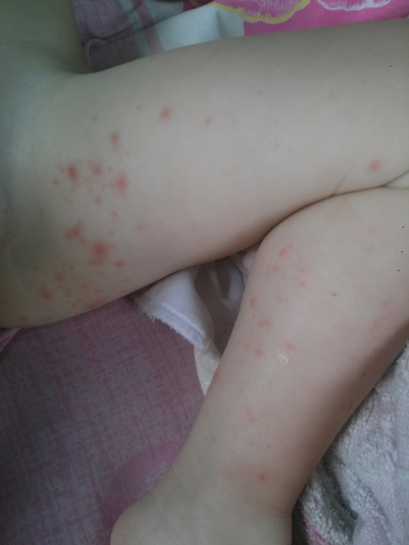 Девочки это укусы, были у педиатра. Просто бешенная мошка...Фенистил и не мыть и фукорцин