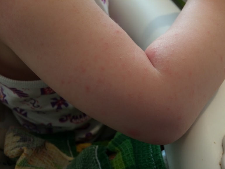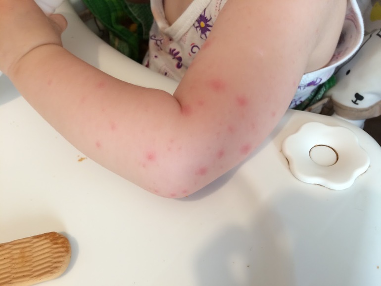 Вот у нас точь в точь!но ещё и на ногах есть!у нас аллергия на гардекс от комаров...намазала руки и ноги😟