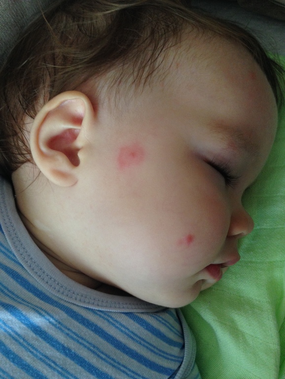 Высыпания на кожеДобрый день! Дочке 1,1 почти. 4 сентября поставили прививку корь-краснуха-паротит, на 10 день появился прыщ на одной щеке, потом на второй, сначала маленькие совсем потом воспаляются сильно и снова маленькие, следом ещё один на лбу и щеке, температуры не было, ребёнка никак они не беспокоят, она весела и активна. Вчера появились на ручках, по одному ладошках, температура 37. Заподозрила ветрянку, вызвала врача. Пришла, послушала-посмотрела, горло красноватое ещё. Говорит, на прививку быть не может, похоже на комариные укусы или пищевая аллергия. Комаров вроде нет уже, холодно, нового ничего не ели. Прописала анаферон из-за горла и темпы, супрастин 1/4 2р/д, ромашку пить, прыщи намазать фукорцином.. сегодня температуры нет, появился ещё один прыщик на ручке, вчерашний сильно воспалённый на щеке стал маленьким и вокруг как бы ореола чтоли. Фукорцином не мазали. На что все-таки похоже, девочки?