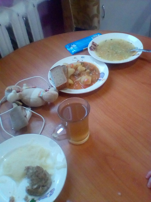 Еда, она неплохая, кормили и меня и мелкую, меня как пологается мелкой давали кашу утром в обед и суп и второе, на полдник сок и пирожок, ужин все мне))) все что нужно соленое и что нужно сладкое, есть комната с холодильником, микроволновой печью и чайником, даже подогреватель для бутылочку есть.
