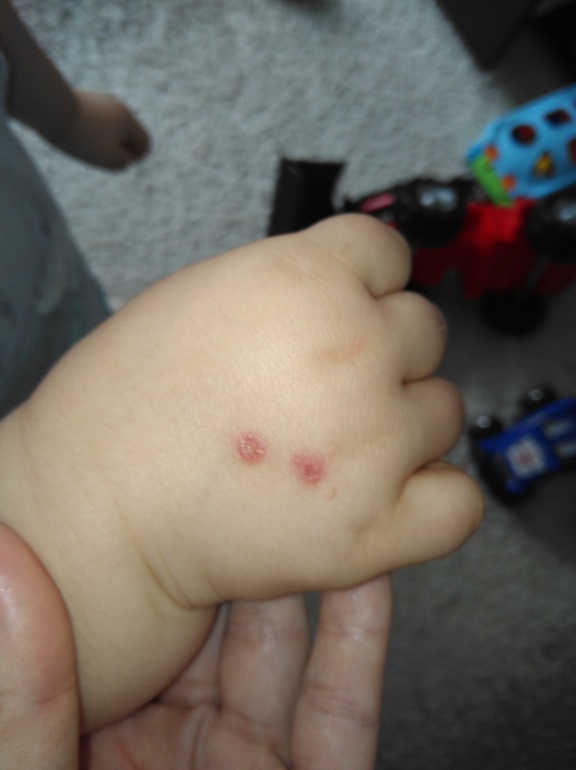 Консультация детского офтальмолога!Девочки, у кого так было?? Ребёнку 2г9м .. На кисти ручки появился маленький еле заметный прозрачный пузырик, на следующий день - болячка как на фото.. Через полторы недели снова прыщик маленький рядом и к вечеру болячка .. (( дерматрлог не очень опытный видимо так как ни разу такого не видела.. Назначила антигистаминные, быби бак на ночь, мазать хлоргексидином и судокрем+пимафукорт..