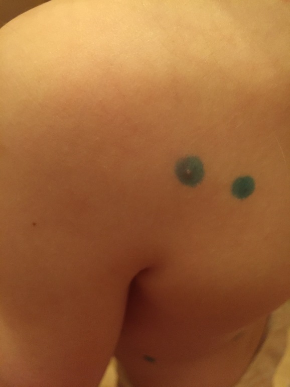 Она самая. Сначала это просто красный прыщ и через день-два он пузырь. Ни в коем случае чесать нельзя. Мы вместо Зеленки каламин применяли. Он хорошо сушит кожу и легко смывается