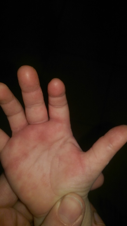 АллергияДобрый день! У ребенка чешутся ладони, ладошки все в прыщиках. Дерматолог сказала что это аллергия, выписала зоостерин ультра по 0.1 гр, мази, капли. Ничего не помогает. У кого было похожее? Чем лечили? Целую ночь чешется. Больше ничего нигде нет