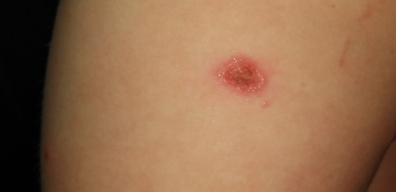 На бедре у 2хлетней малышки. Эта самая крупная. Ещё 2 штуки поменьше. К дерматологу только в понедельник. Знает кто-нибудь, что это и как лечить?