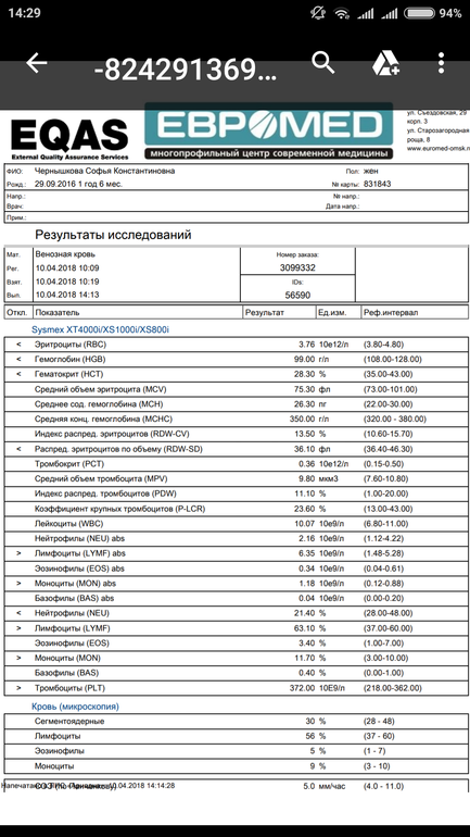 Анализ крови, паникую, блин. Посмотрите, пож-та.