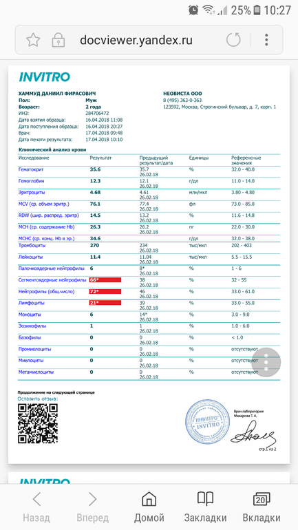 Из симптоматики - рвота утром несколько раз, небольшая вялость, и зеленые сопли 2ю неделю. К врачу с результатами только завтра вечером попадем.
