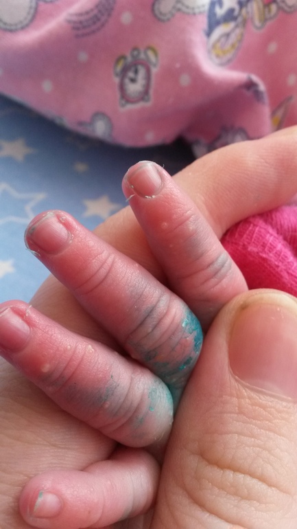 Ой, извините))) у меня самой две девочки))) и всех новорожденных девочками называю))) всё может быть. Но странно, что, если на порошок - дальше по телу не идёт... протирайте пока чередой, можно хлоргексидином тоже... хуже от них точно не будет. До второго числа не так уж много времени. Снимите царапки, пусть пальчики подышат. Если на гв - временно исключите потенциальные аллергены.