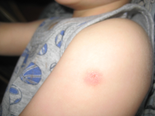 Сделали БЦЖ 24 мая в год и четыре ( до года был медотвод от живых вакцин ),почти 2 месяца прошло.Сегодня ходили в районную поликлинику на прием к педиатру показывать развитие прививки.Через месяц не пошли,т.к. резались 19 и 20 зубы и перебаливали мы их. Сегодня врач посмотрев на прививку и выслушав меня,что в воскресенье у нас вышло немного гноя,сказала,что если опять нагноится,то сразу сдаем кровь,мочу и едем к фтизиатру срочно.