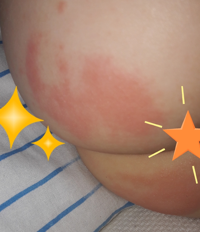 Сильная аллергия судя по локализации на подгузы, второй вариант питание ваше если гв или смесь.бепантен, фенистил гель, и капли.