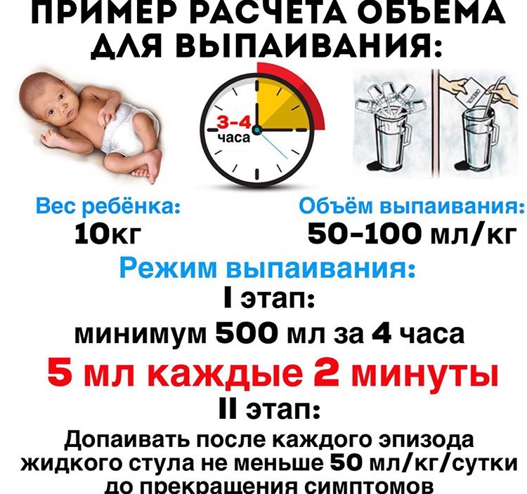 Около недели по моему, капельницы дня три - четыре делали. Это ад конечно был, я и сама потом подцепила, помню как муж меня в пять утра в больнице менял.. Сейчас даже полезла поискать нормы жидкости, которую нужно выпить, за 4-6 часов это 1 литр, для веса в 10кг. Только если все назад это выходит, замкнутый круг получается.. Вот нет тут чёткости, это и пугает..