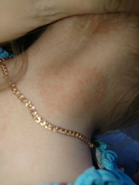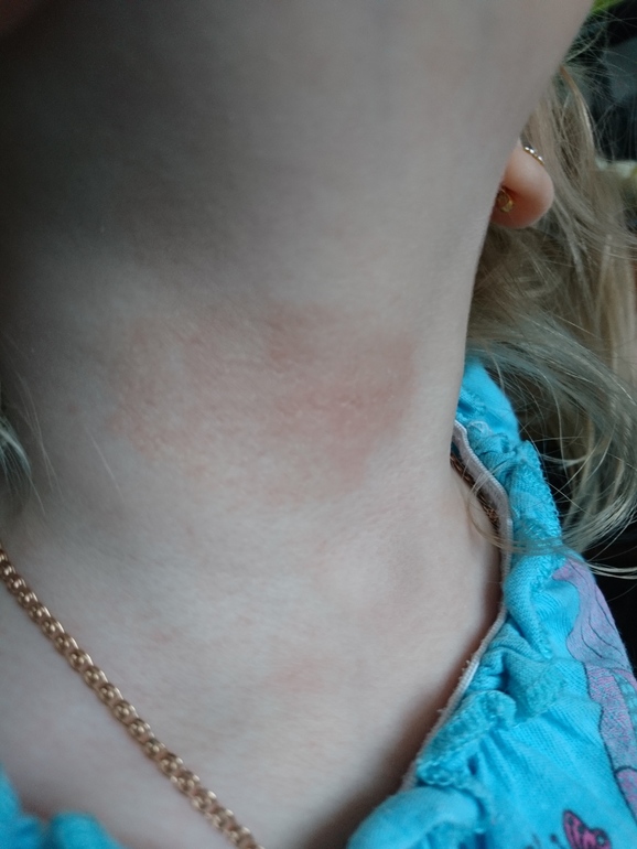 Высыпания на кожеДобрый вечер, девушки, подскажите кто сведущий. У дочки (2,3 года) появились летом пятна на коже, сначала было одно на шее спереди, думали потница, не проходило пару месяцев, потом появилось такое же на шее сзади, потом появилось на сгибе руки, периодически то бледнеет то краснеют и не понятно от чего зависят эти рециливы, до конца не проходит не руке уже давно, на шее пятна не Такие выраженные стали, на ощупь шершавые и шелушится кожа, фото прилагаю, у врача были, сказала предположительно аллергия, все продукты питания по очереди исключает, все не то, это точно не на продукты, антигистамин эффекта не даёт, мажу элиделом когда краснеет(врач прописала) но толку мало, куда бежать уже не знаю... Что это может быть? Если б аллергия наверное от антигистамин проходило бы? Ещё нюанс, мы в апреле завели котёнка, может на него?... Но тогда почему оно все ж бледнеет периодами? Может у кого было похожее, подскажите