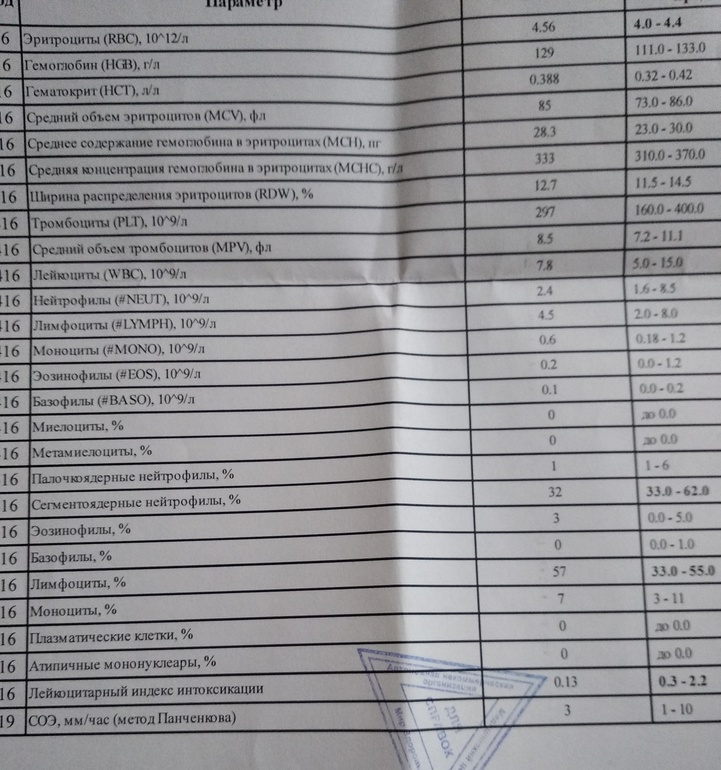 Эриторициты и лимфоциты повышены, нейтрофилы понижены