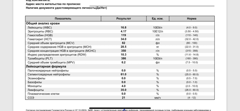 где тут нейтрофилы? не вижу. а вообще сильно понижены лейкоциты, т.е. свой иммунитет плохо будет справляться.... да и соэ повышено.. странно что тромбоциты не понизилисьььь. склоняюсь к антибиотикам.... который день болеете? что с остальной картиной?