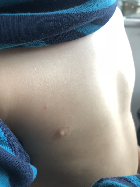 Без понятия что это. Переодевала днём сына. Обнаружила 3 на спину и 1 на груди типо как волдыри. Внутри водичка. На что похоже?