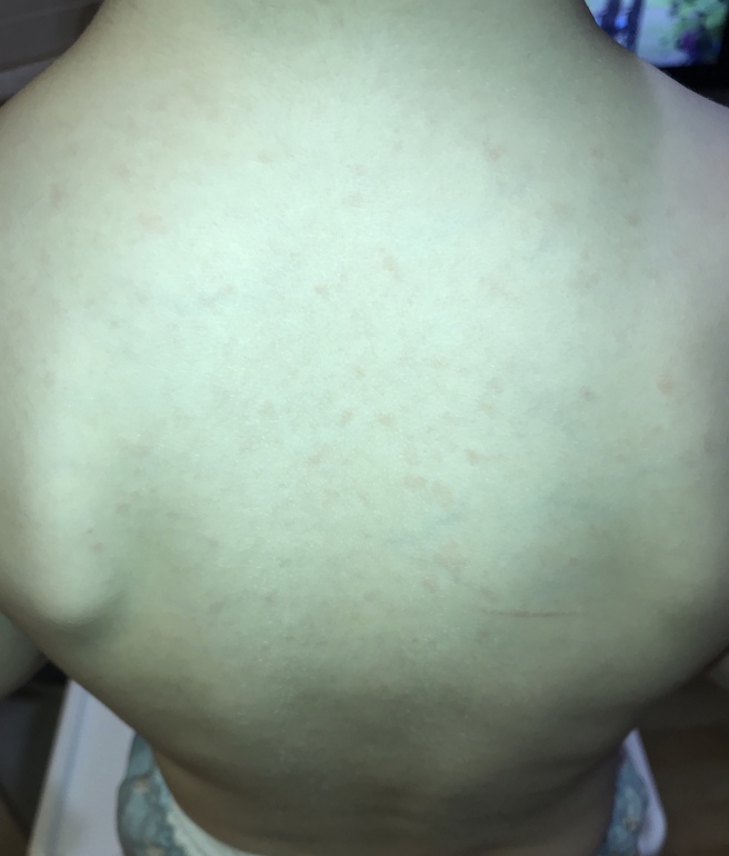 Высыпания на кожеВсем привет!недавно я писала про бессимптомную температуру .Так вот на третий день к вечеру темпа спала сама ,многие предположили розеолу .Моча ок ,кровь педиатр сказала что вирусная .В итоге во второй половине дня появилось вот это (фото под кат.)