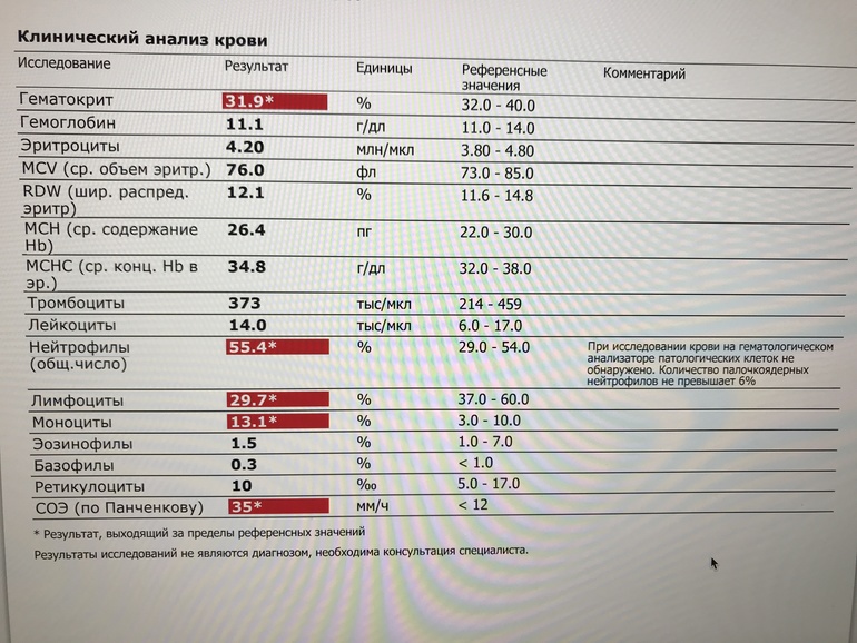 Посмотрите результат ОАК, пожалуйста, 5 день болезни