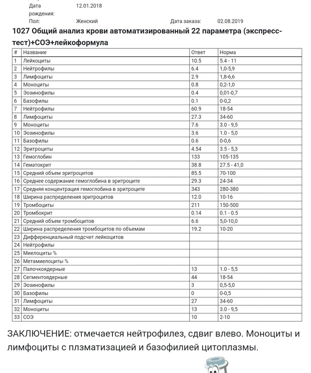 Лейкоциты, кстати,у дочки всегда такие и без болезни.