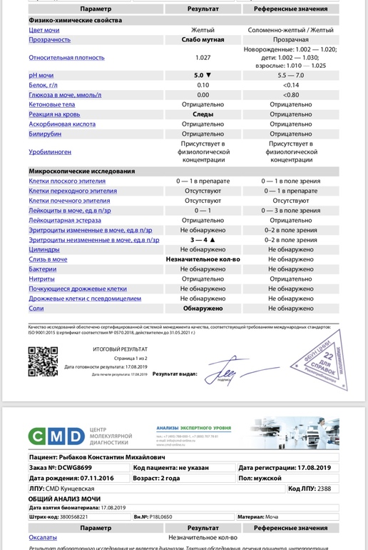 Вроде как воспаления нет, но кетоны и соли говорят о том, что надо пить!