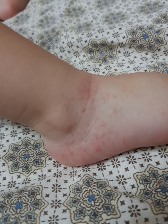 Не похоже на энтеровирус. Он чаще на самих стопах и ладонях появляется. Что еще беспокоит малыша? Есть ли температура? Может сыпь во рту?