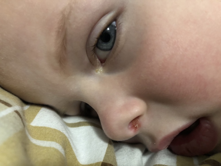 Высыпания на кожеДевочки ,всем доброе утро! У сунули с носике был малюсенький прыщик ,видимо он его сознал,ухудшений сильных нет ,но чувствую что надо чем то помазать.(фото под катом ). Не исключаю что это что то простудное.