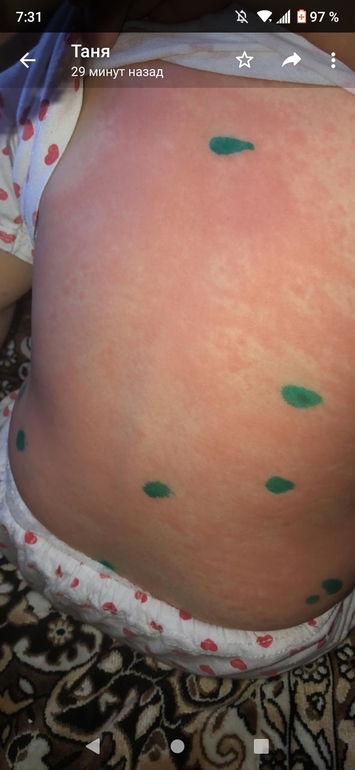 Высыпания на кожеВсем привет. Девочки,может кто сталкивался с такой заразой. Ребенку 1,9,ребенок не мой,а знакомых, семья военных живут в гарнизоне, там обычного то педиатра нет,не говоря уже о других. Сначала появились не много ( 3-4)на ногах, они чесались, думали что комар покусал. Помазали кремом. Утром точек стало больше похожи на ветрянку. Помазали зелёнкой. А сегодня утром вот такой ужас. Может кто сталкивался, им что б добраться до врача надо очень постараться, а сейчас в связи с пандемией, днём с огнём никого не сыщешь.