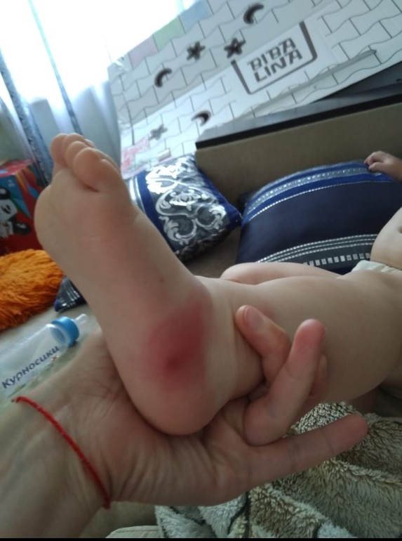 Все о травмах, царапинах, шишках,ушибах и порезахДевочки добрый день. Ребенок не мой. Попросили узнать. Мальчишка наступил вчера на модельку. Долго плакал а сегодня вот что. Появилась сначала точка,подумали комариный укус.помазали но к вечеру раздуло.к какому врачу бежать.все закрыто сейчас