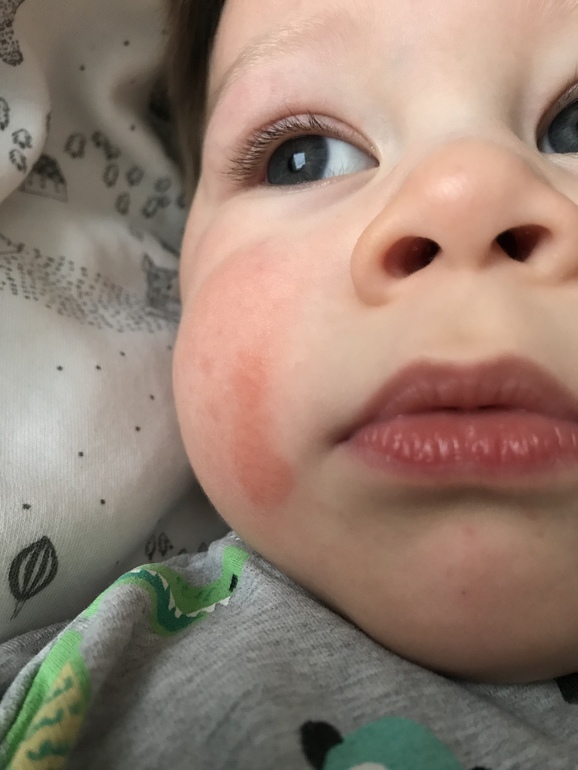 Высыпания на кожеПривет всем! У сына на лице вот такое образование. Не увеличивается. Обжога не было. Понятия не имею что это может быть. Мазала мазью с цинком, не проходит, только подсушило.Будто волокнистое покрытие в полоску идёт. Сыночку 1,1.У кого так было, что это может быть?