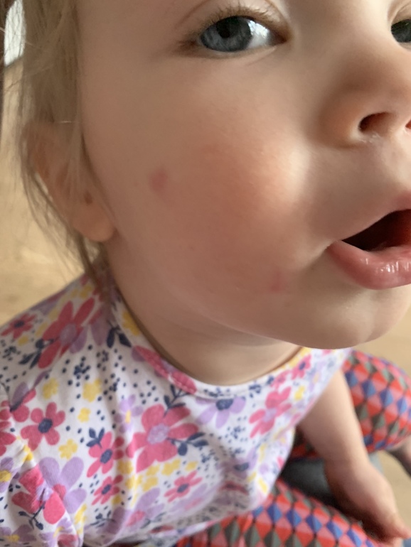 АллергияДевочки привет! Посмотрите пожалуйста это аллергия? Пищевая? Из нового ничего не вводила, позавчера дольку очищенной мандаринки дала до этого давала не было ничего🤔. Пятна красные не шелушаться. На лице, на руках ближе к подмышкам и на пузе.