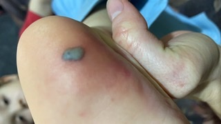 Все о травмах, царапинах, шишках,ушибах и порезахДевочки, недавно писала здесь пост про высыпание на ступне, и вот новое «приключение». Вчера сидел в игрушках в ящике и прищемил ножку почти в том же месте 😬. Выглядит это так :