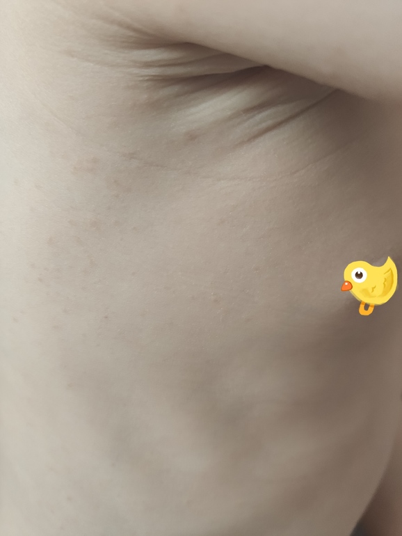 Самое интересное что две недели назад появились прыщики на одной ладошке, такие как плотины пузырьки и все. До сих пор проходят. А сейчас неделю назад высыпало с одной стороны живот и где подмышка. Потница? Прыщи не чешутся, симптомов больше никаких...