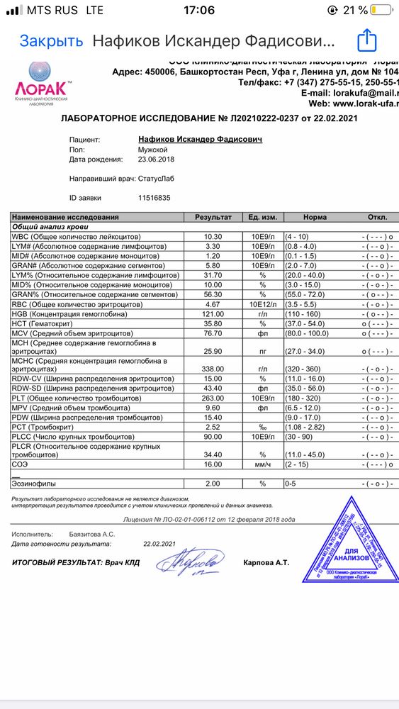 Немного СОЭ повышен и лейкоциты но это не критично