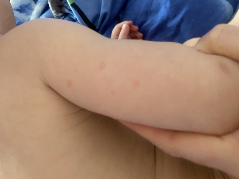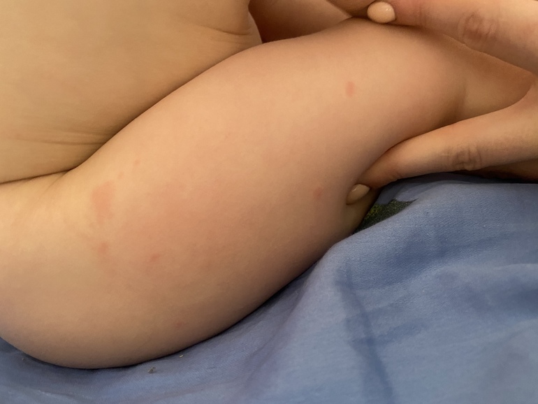 Скажите пожалуйста, у вас прошли пятнышки? У нас похожее очень, как волдыри сначала, потом проходят и просто красные пятна.
