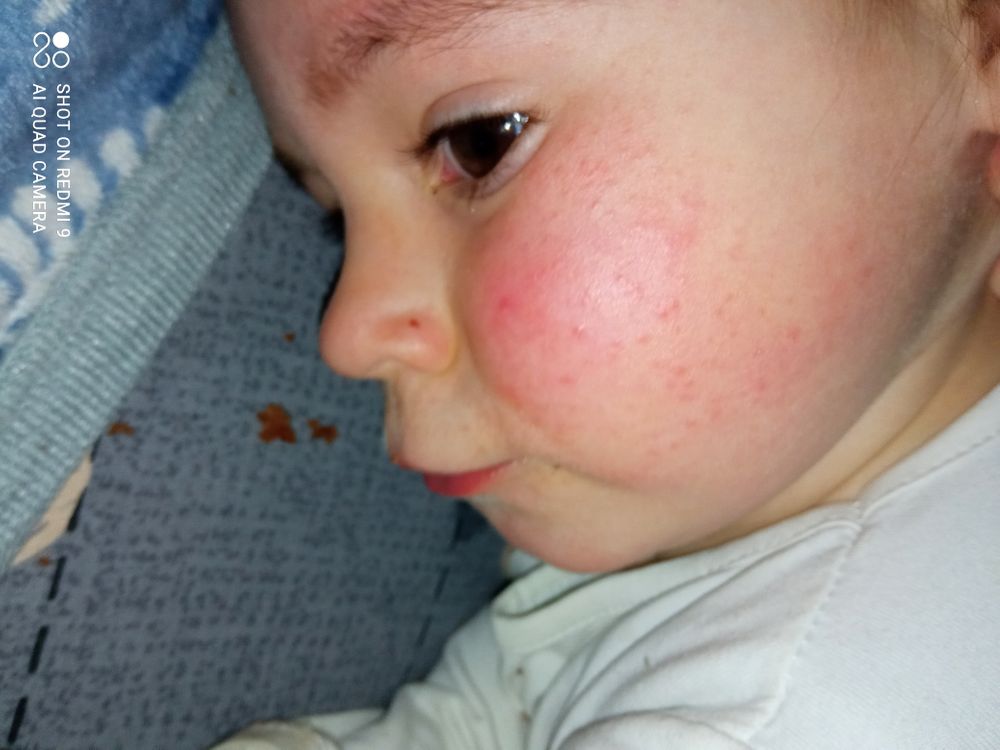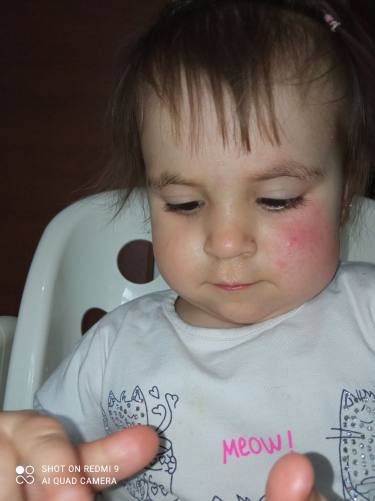 Сыпь на щеке,розовая, гарячая