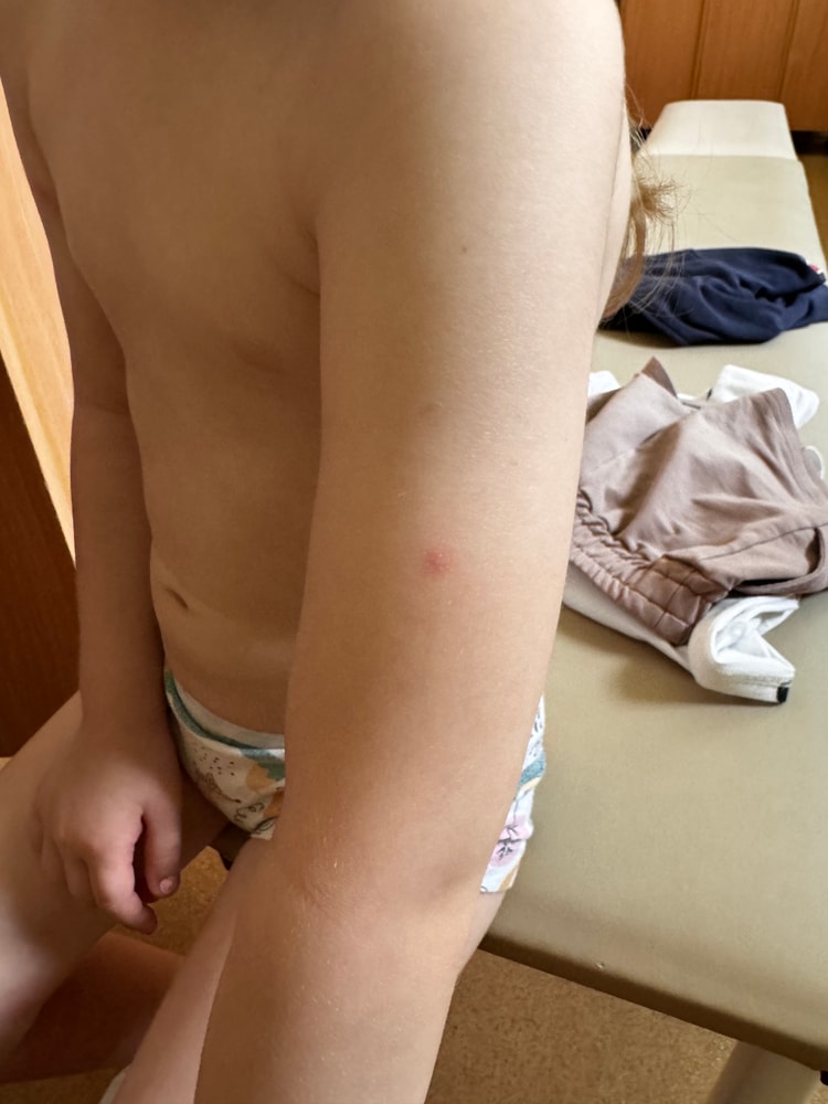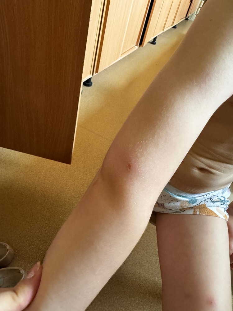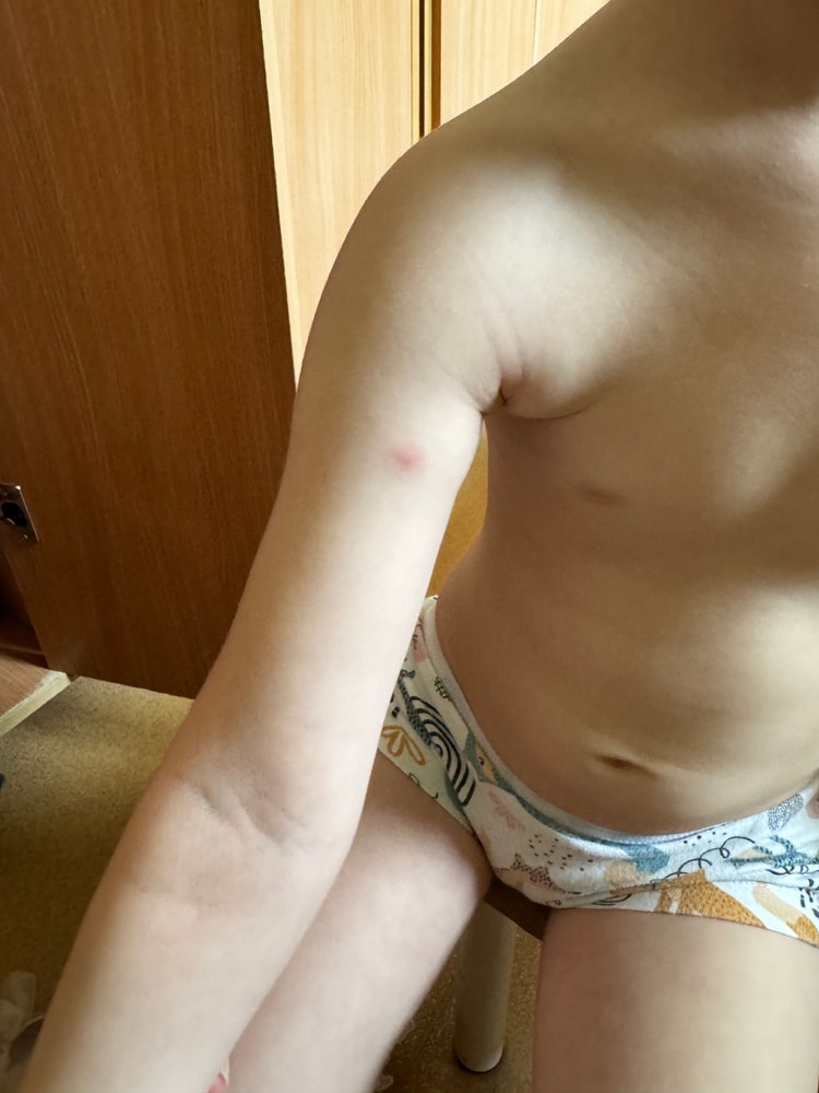 Высыпания на кожеУкусы появляются третий день, только у дочки. Перебрала все, достала все матрасы, пересмотрела с фонариком. Кровати отодвигала, везде обсмотрела. Следов жизнедеятельности клопов не нашла. Комаров и мошек дома не находила и не видела.
