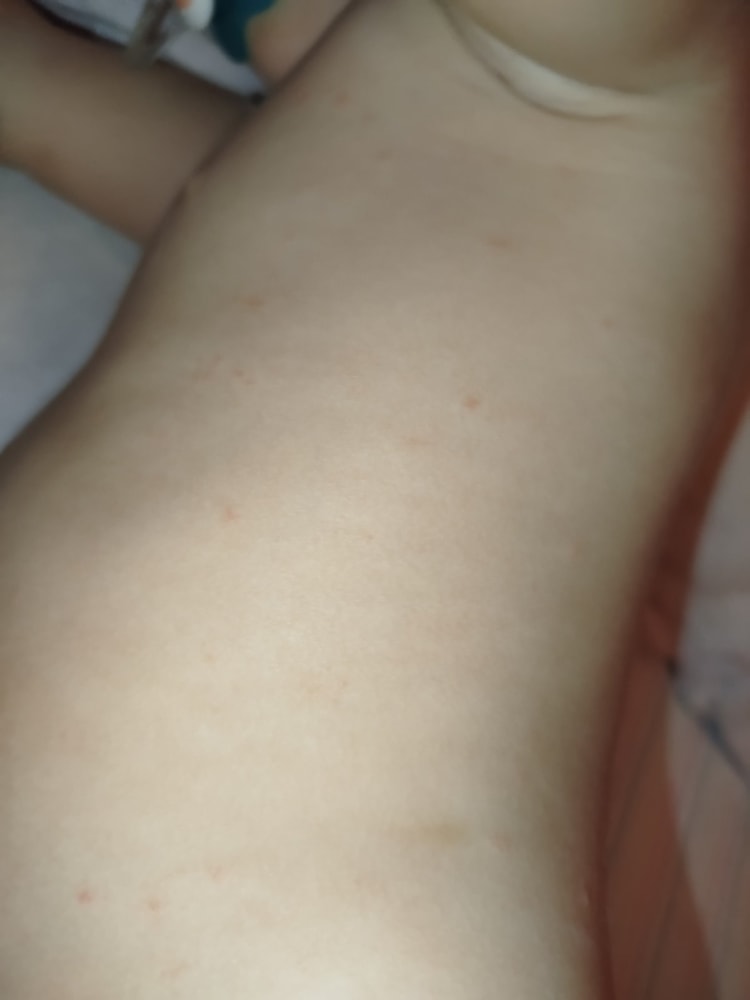 Мы были с подобным у дерматолога, на фоне стресса это появилось, поставили подозрение на атопический дерматит. У нас были такие пятна и сыпь на все бока и под коленом. Выписали косметику для ухода за атопической кожей