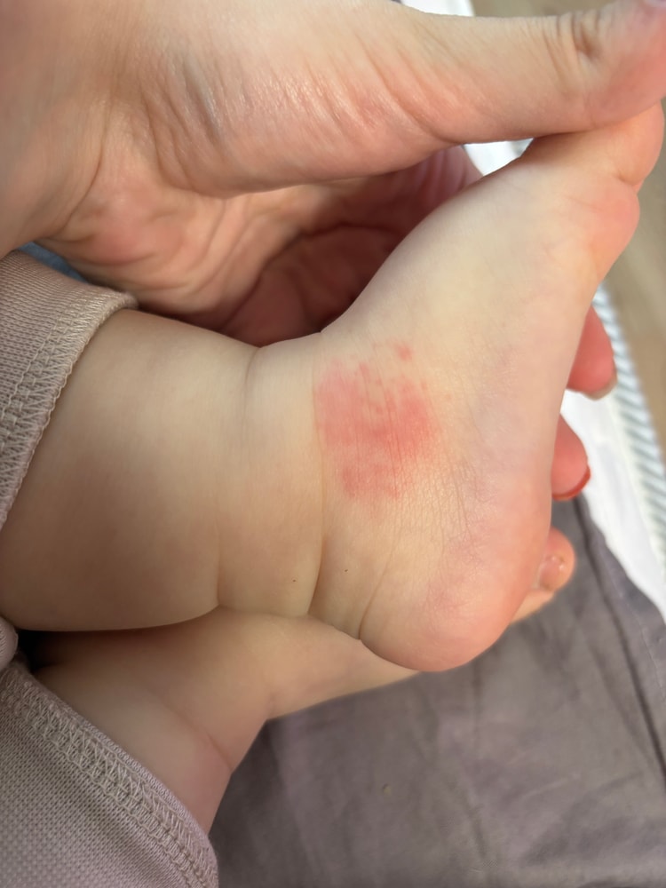Всем привет! Недавно у малышки вскочило такое пятно. Плоское , не сухое- обычное, без выпуклостей. Совпало с комариным укусом на глазу (там был отек), я давала Зиртек.комар кусал 19 июня, а отек то прошел, то возобновился 29 числа, опять пришлось давать. Отек Зиртек снял, а это пятно так и осталось (возникло 29 июня). Посему мысли, что это не аллергия. А вы что думаете? На фото день 1 и день 2. Сейчас уже сходит. Сидим дома из-за непогоды, вышли 1 раз за последние две недели в закрытой обуви. Поэтому укус маловероятен.Спасибо